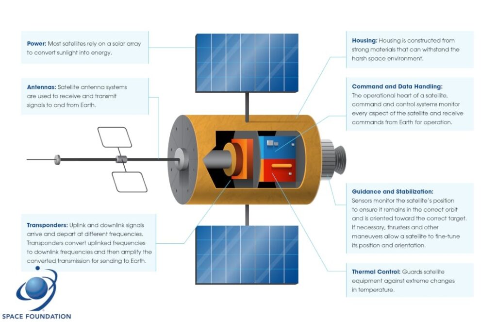 - The satellite sends it to a big ground station on Earth. The station gets the info from the main internet.